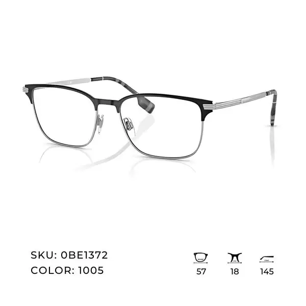 Gọng kính kim loại 0BE1372 với thiết kế nửa viền tinh giản, phối màu đen bạc hoặc nâu nhạt thanh lịch, mang đến vẻ ngoài gọn gàng nhưng đầy khí chất.